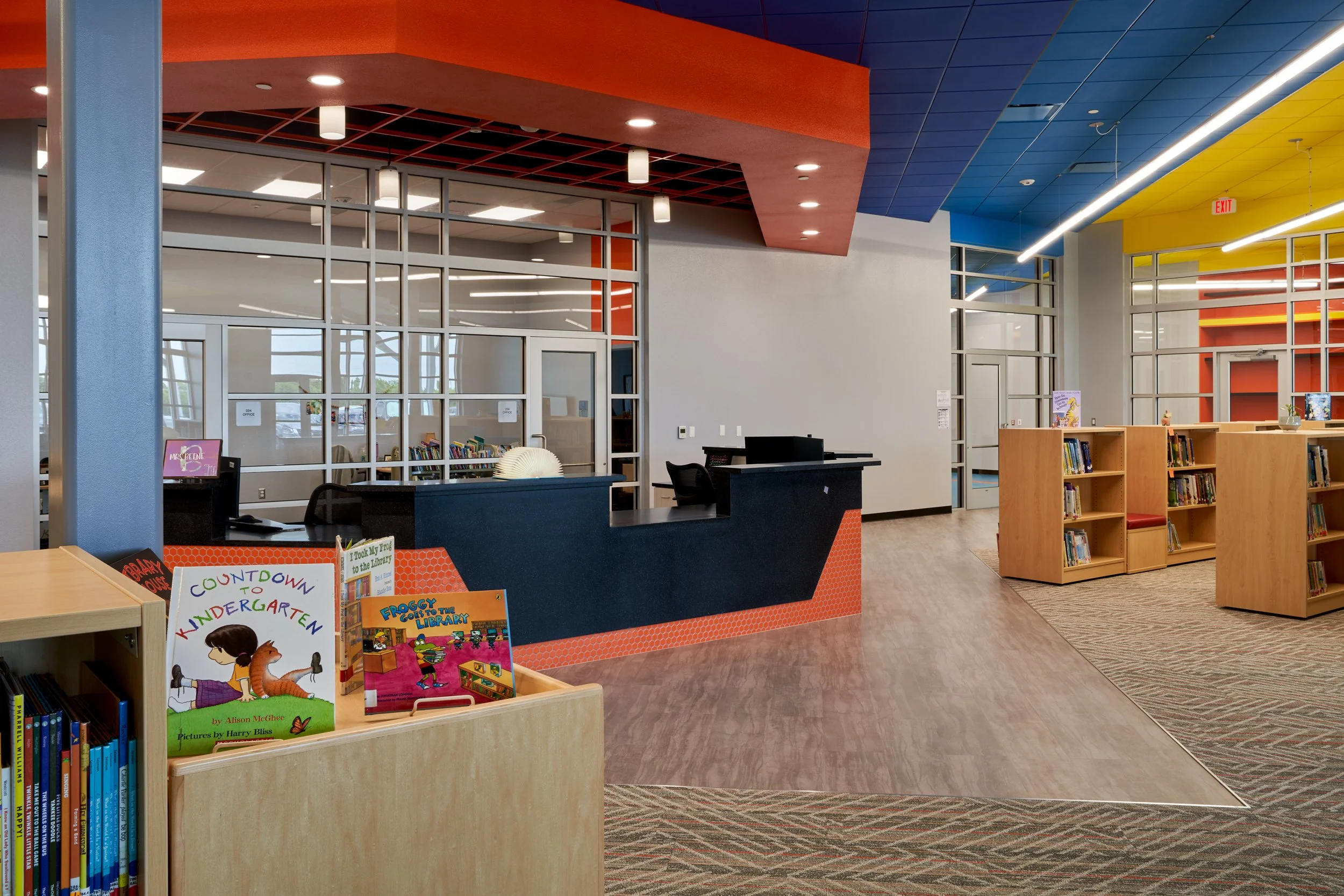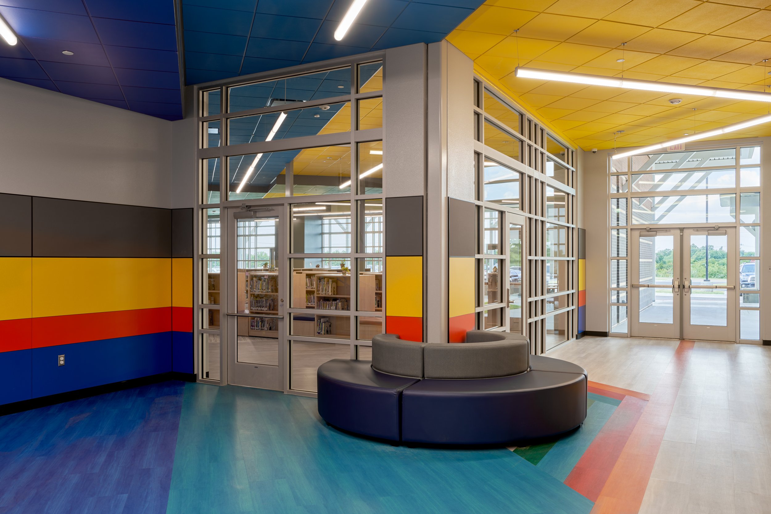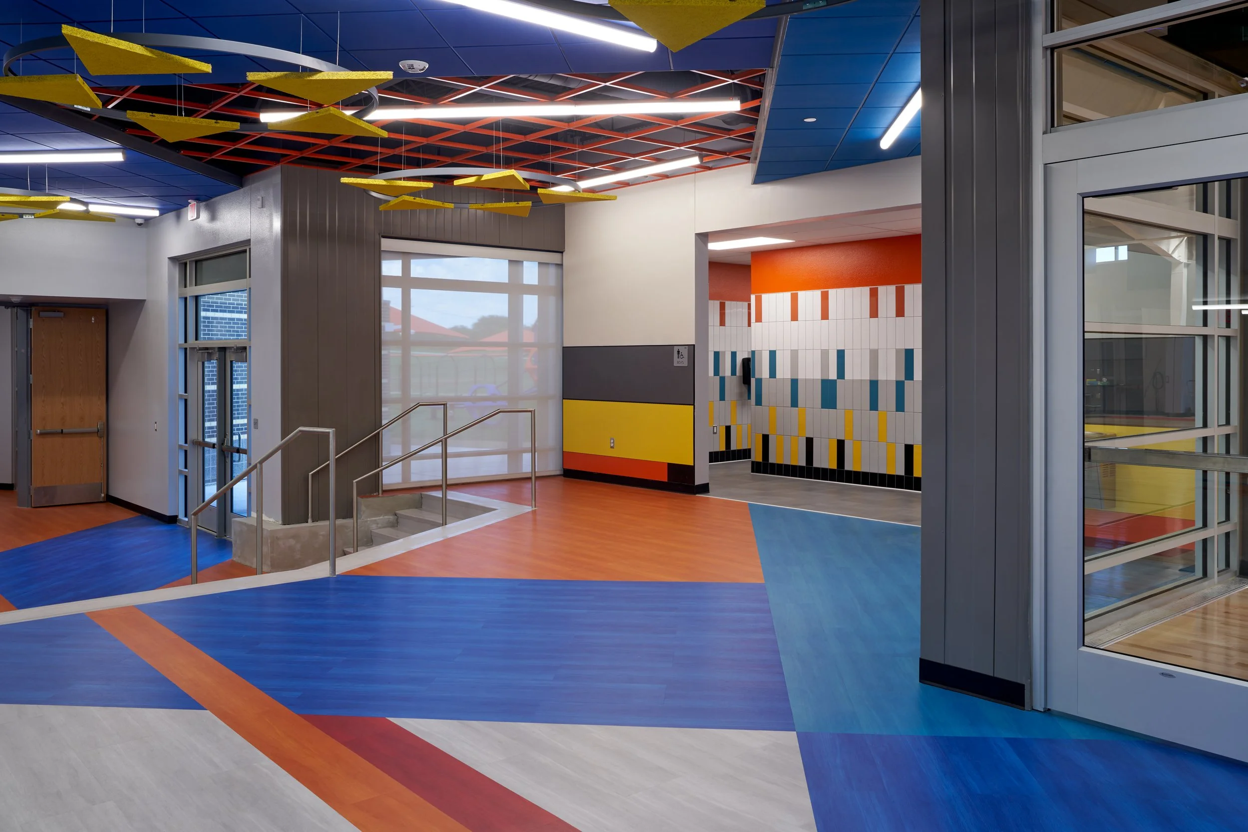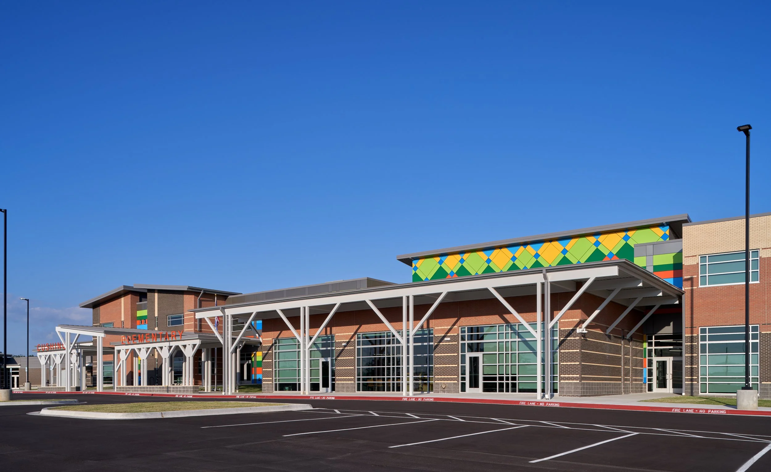 The facility includes general education classrooms supported by specialty spaces for music and physical education, along with a library and dedicated administration area. A full-service cafeteria, gymnasium, and storm shelter were integrated into the building to support daily use while enhancing safety. Indoor and outdoor playgrounds further expand opportunities for student activity and engagement. Together, these elements create a flexible and durable elementary school that supports instructional needs, student wellness, and long-term district use.