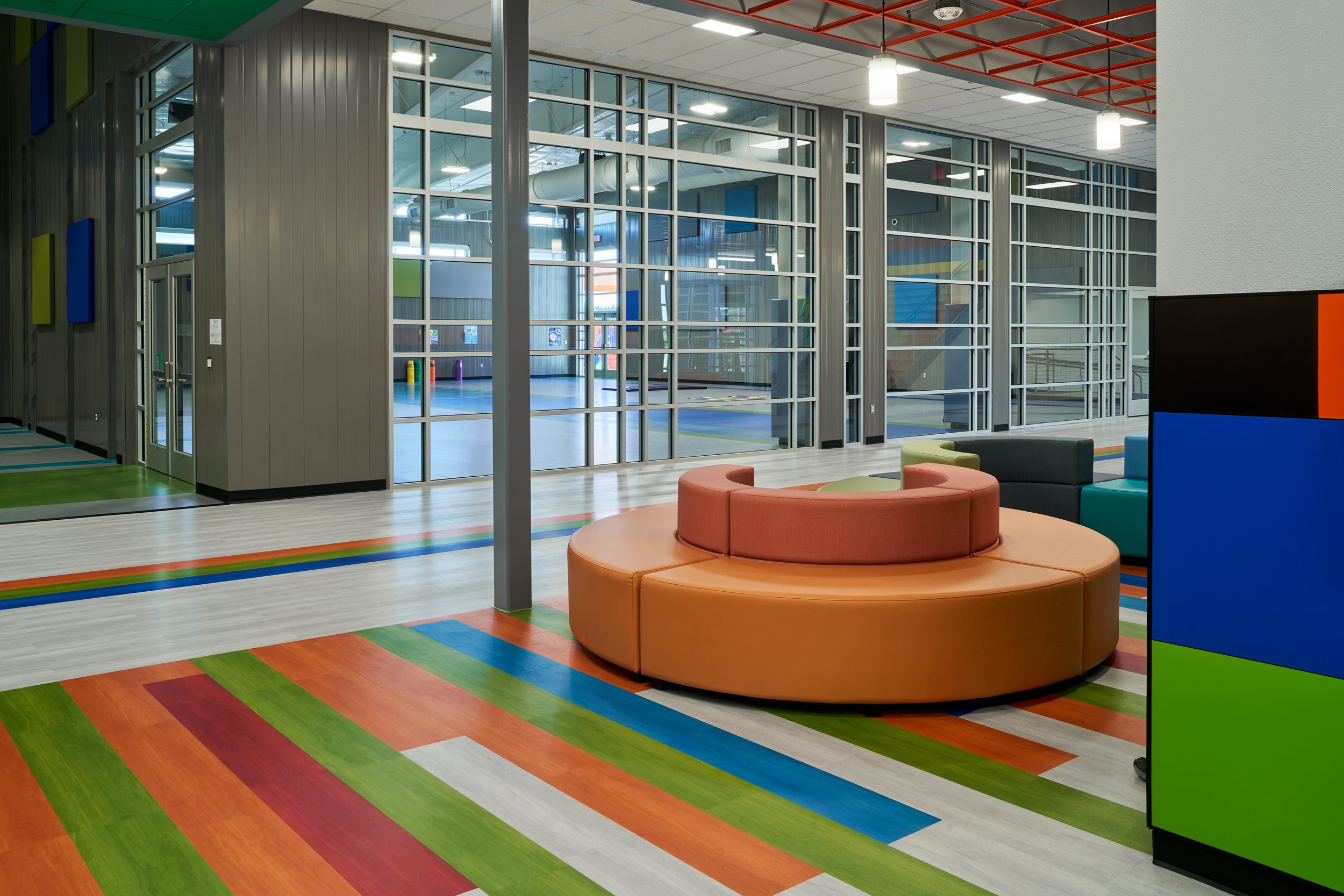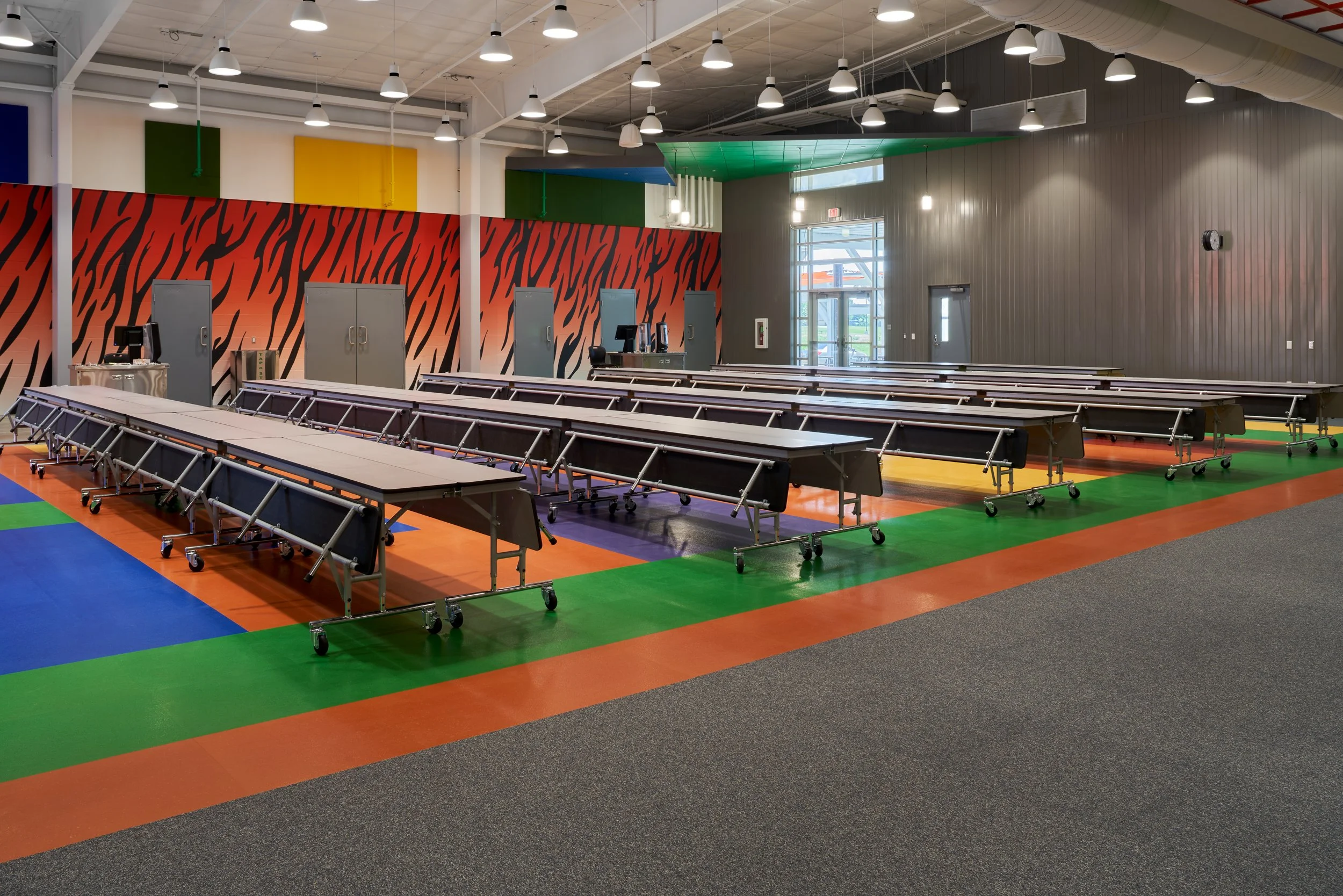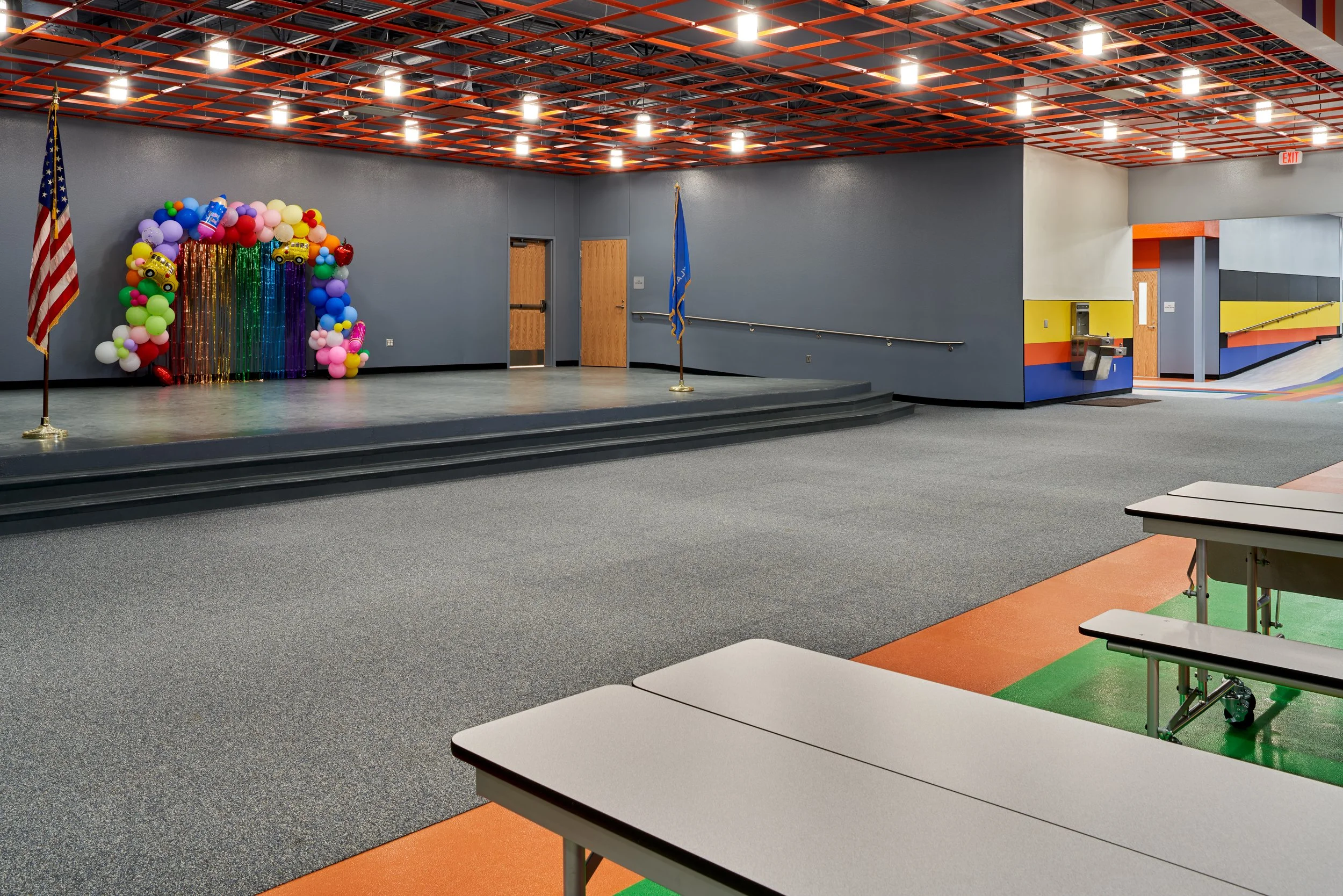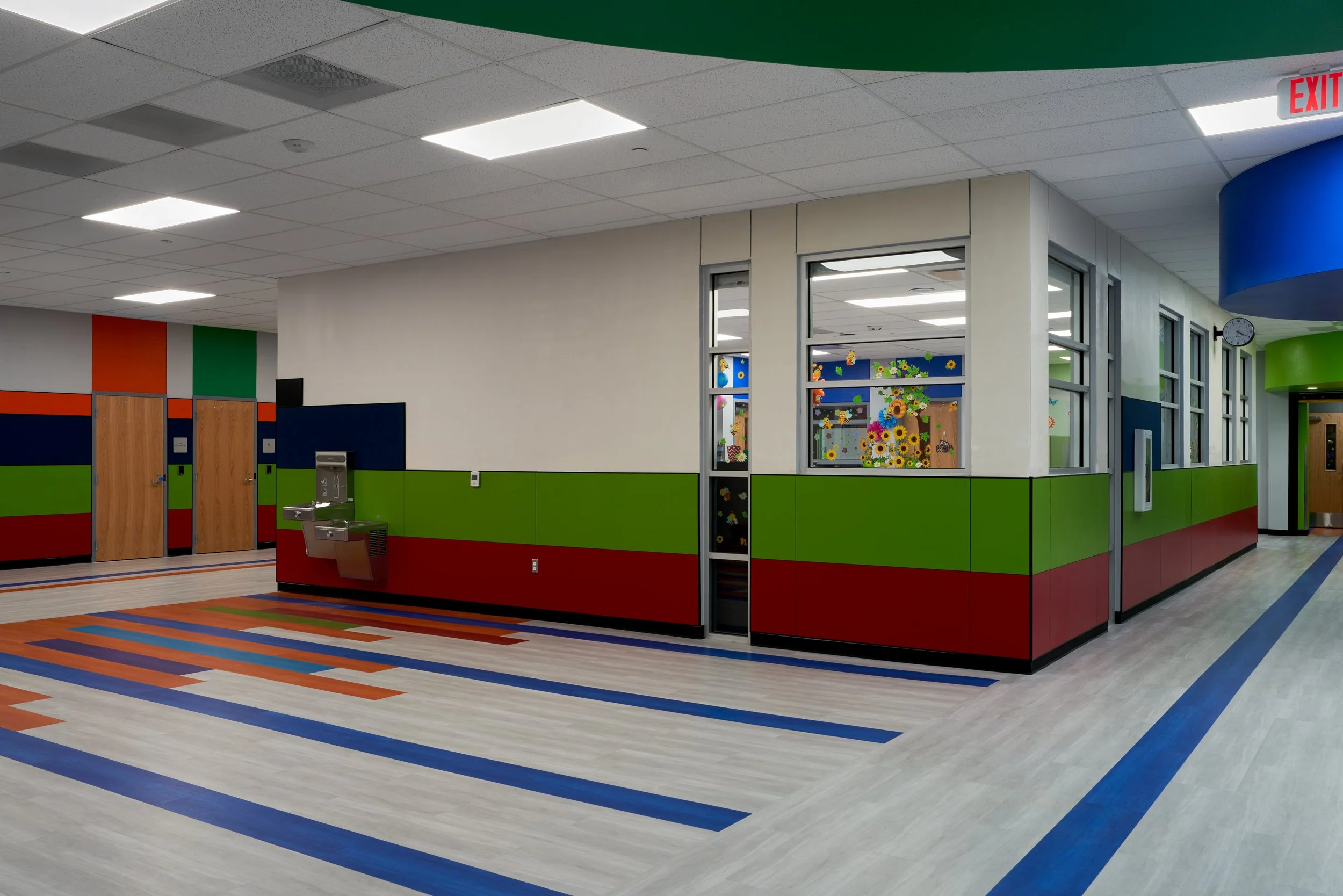 The facility includes general education classrooms supported by specialty spaces for music and physical education, along with a library and dedicated administration area. A full-service cafeteria, gymnasium, and storm shelter were integrated into the building to support daily use while enhancing safety. Indoor and outdoor playgrounds further expand opportunities for student activity and engagement. Together, these elements create a flexible and durable elementary school that supports instructional needs, student wellness, and long-term district use.
