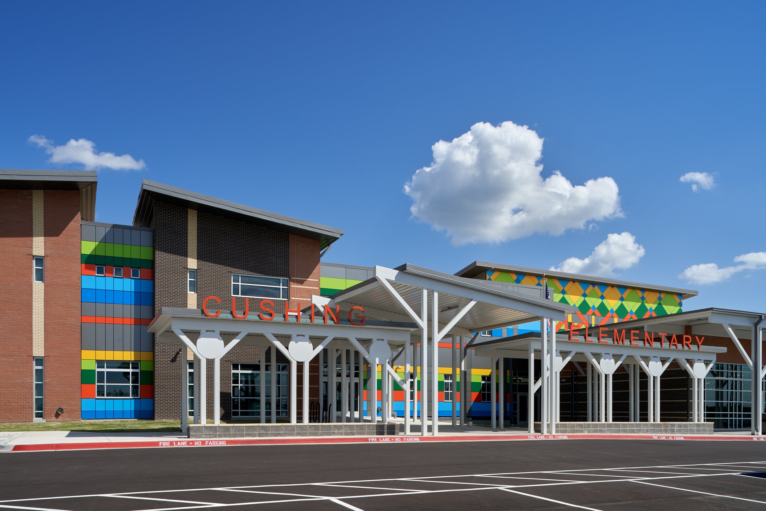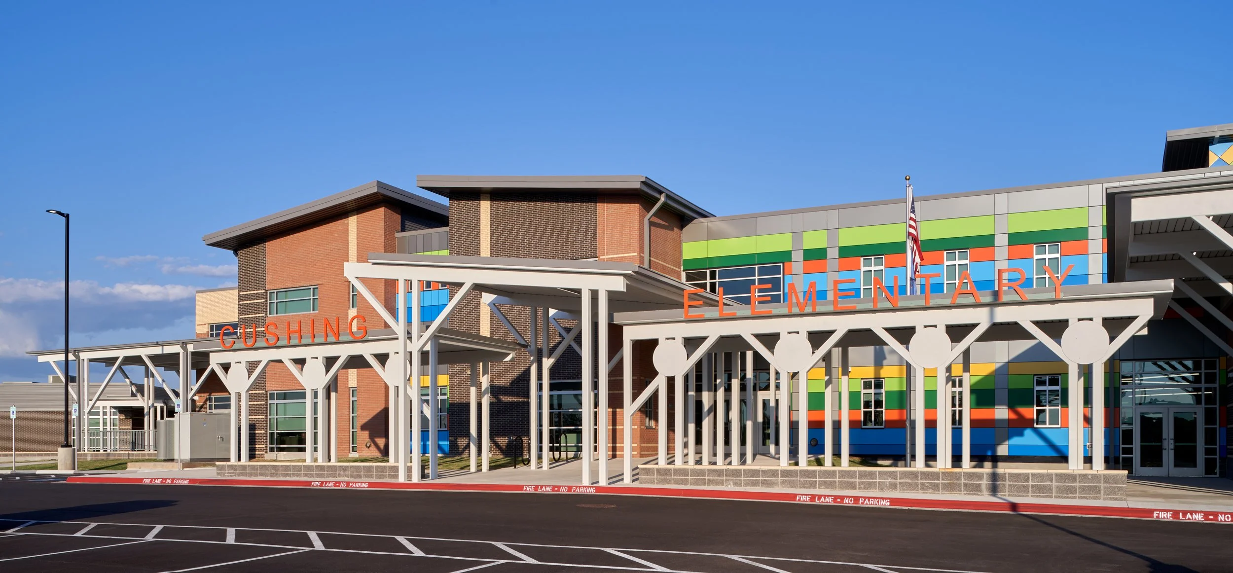 Cushing Elementary School is a new 125,433 square foot elementary campus designed to consolidate academic, administrative, and student support functions into a single, cohesive facility. The two-story building was planned to provide clear organization, efficient circulation, and a welcoming environment for students, staff, and visitors.