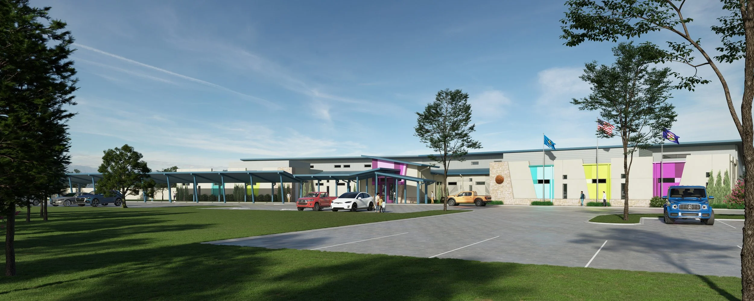 The building will include four classrooms, an art room, an exercise gym, a dining area with an integrated storm shelter, and a full-service kitchen. Support spaces will include staff offices, a workroom, and a breakroom, providing operational support for daily programming.